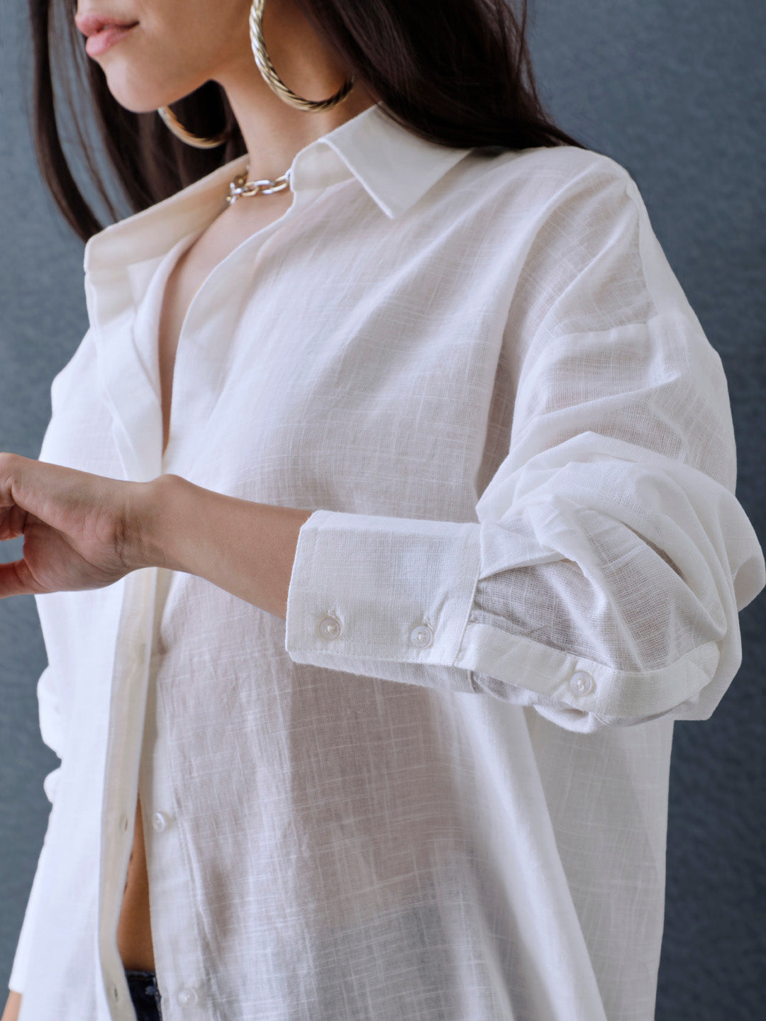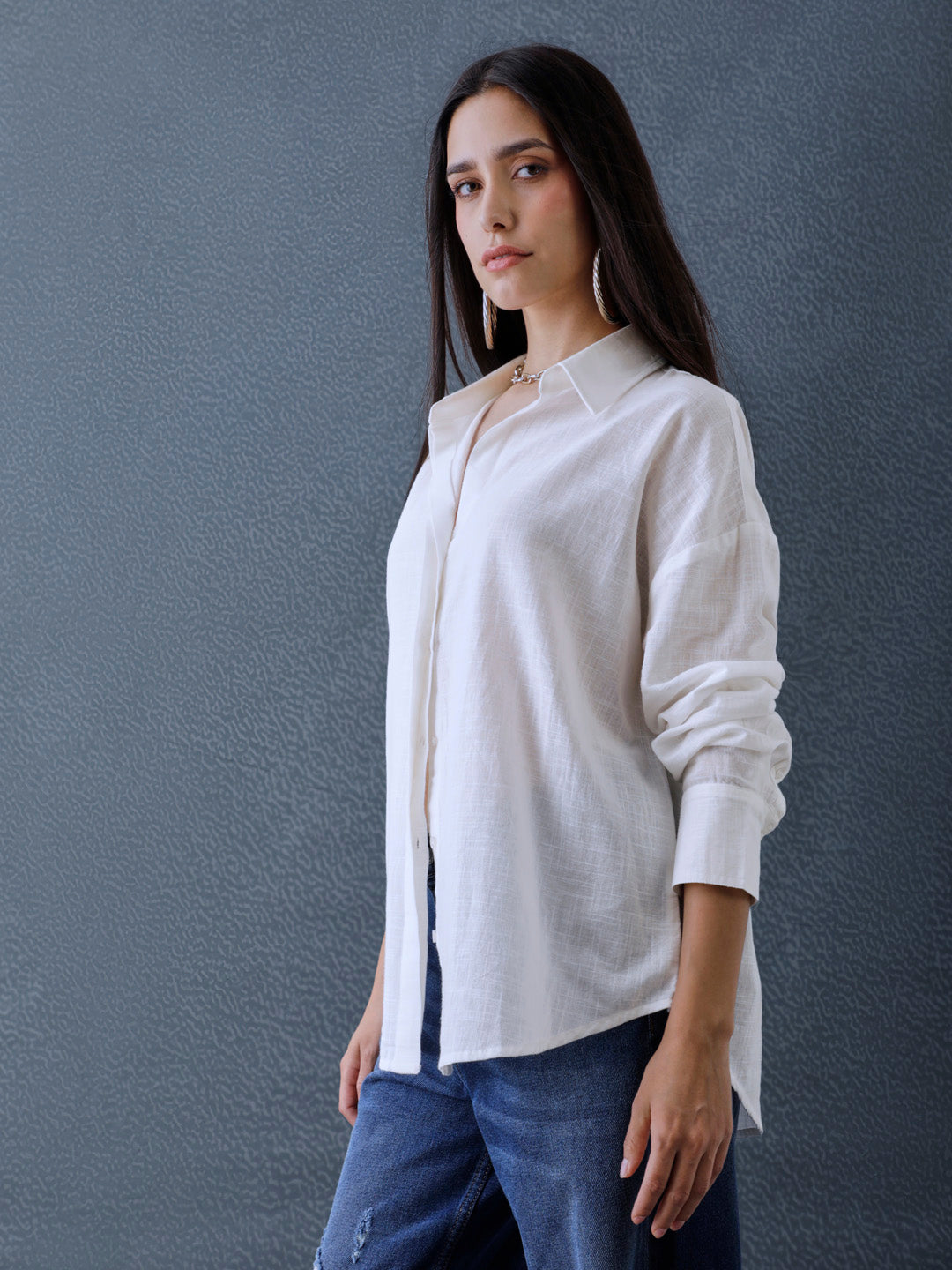 Step out in style with this White Oversize Fit apparel, crafted with premium Cotton to ensure comfort and elegance for every occasion.