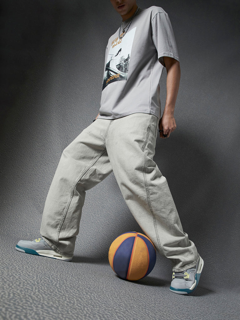 Voltedge Baggy Fit Cotton Solid Grey Jeans For Men