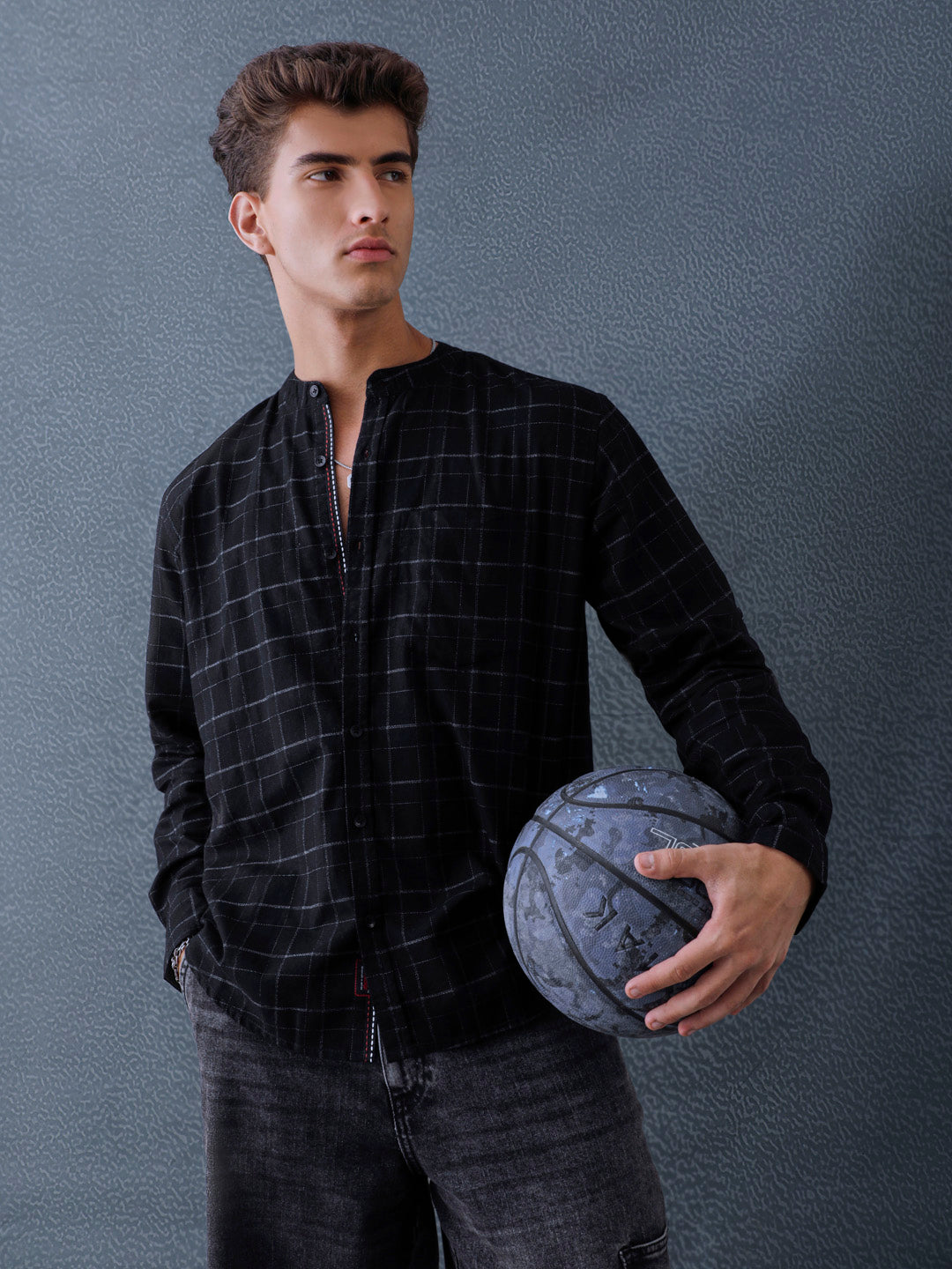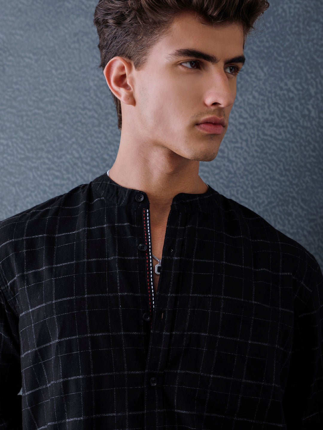 Men Relax fit Black Checked Structured Mandarin Collar Casual Shirt