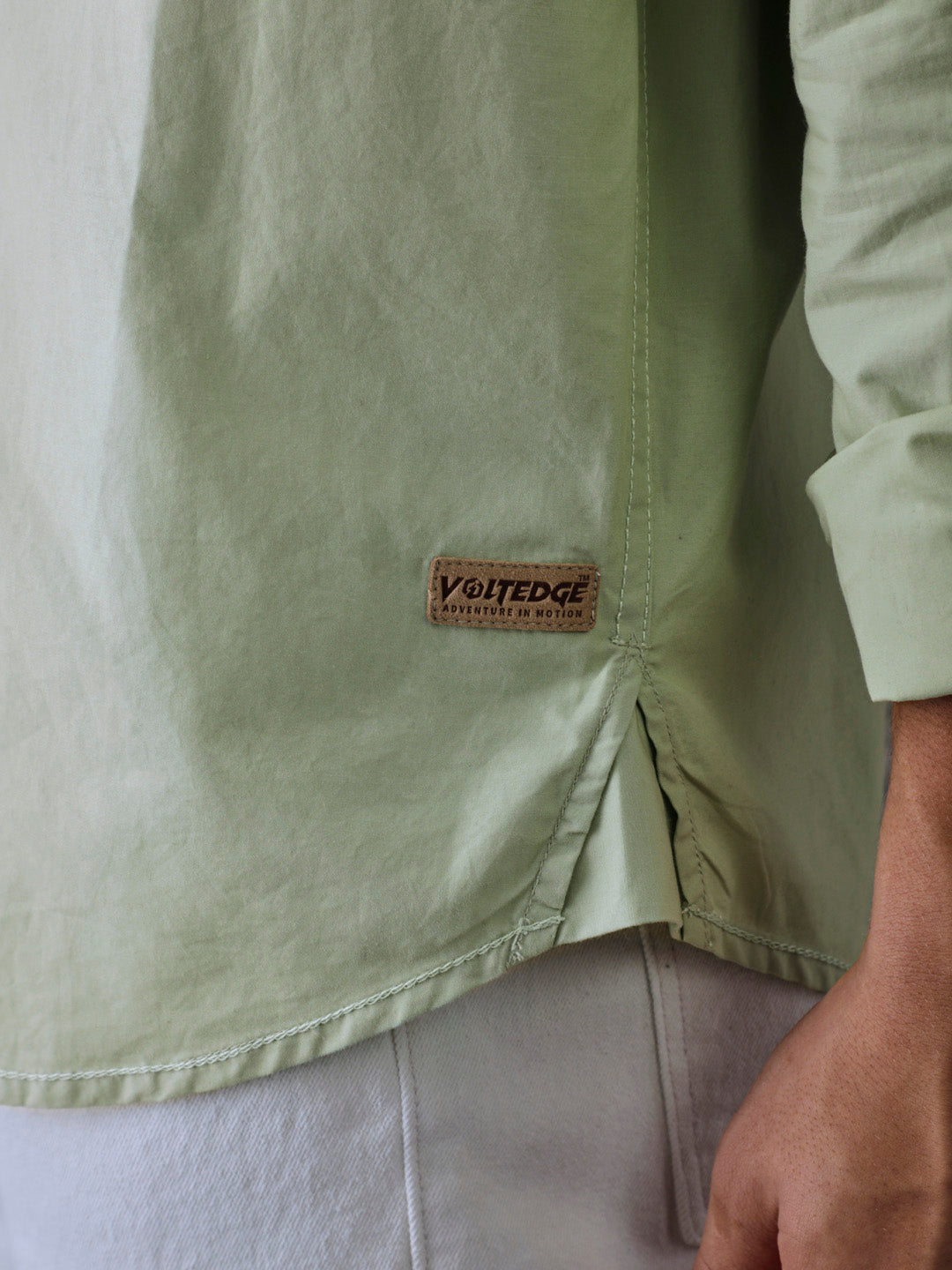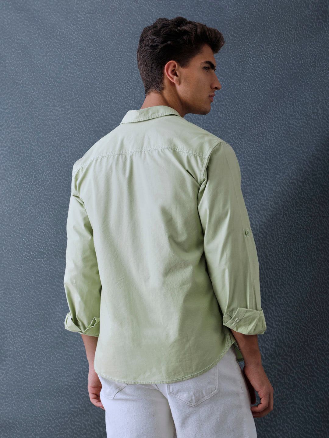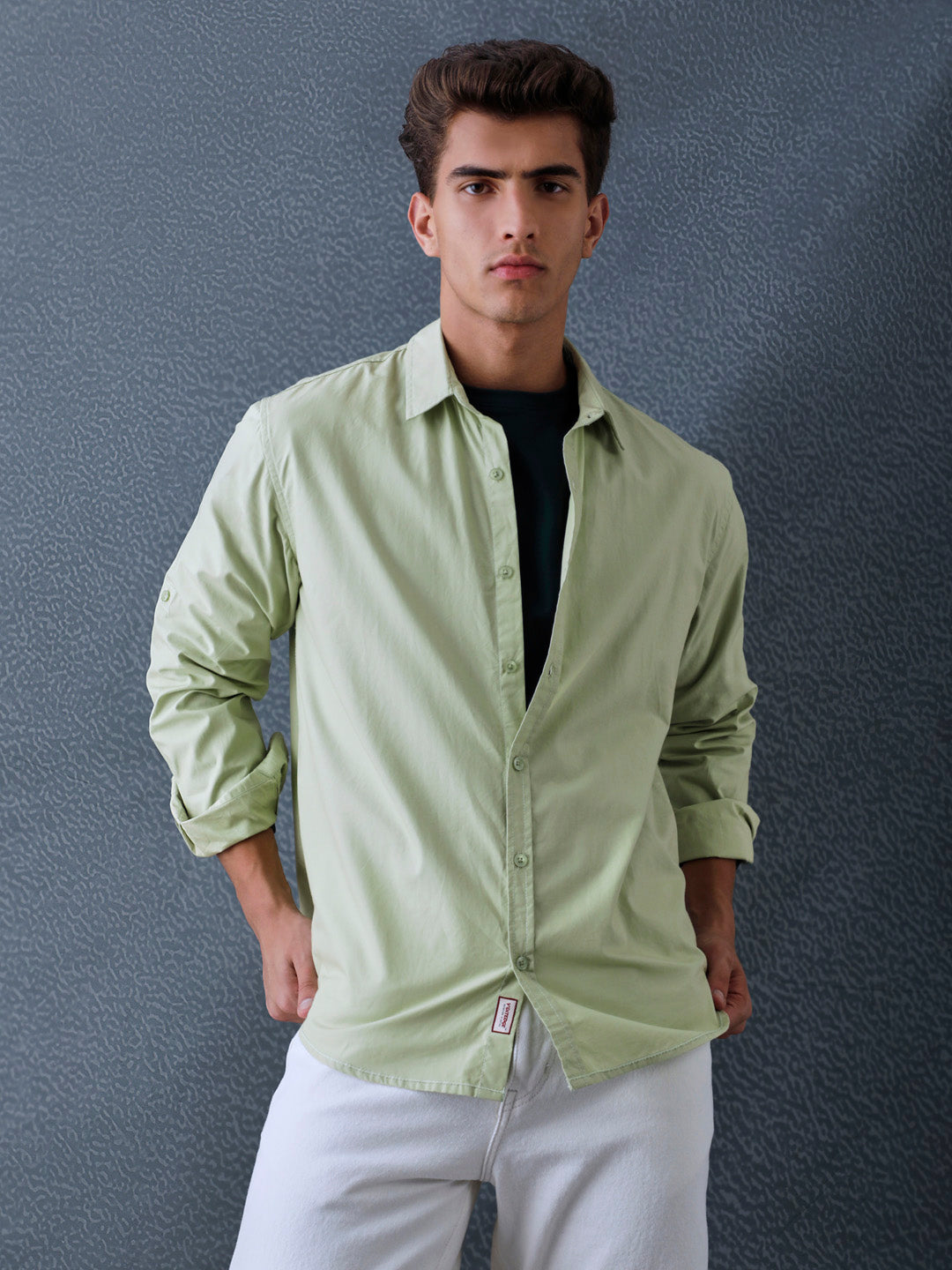 Men Relax fit Pista Green Solid Peach Cotton Casual Shirt