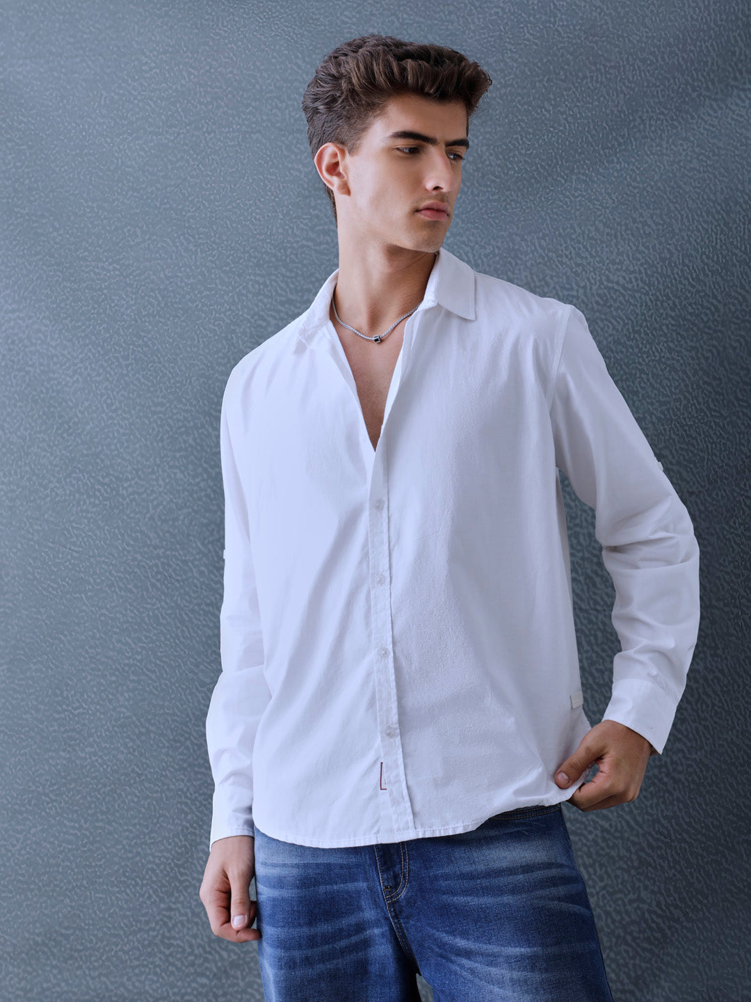 Men Relax fit White Solid Peach Cotton Casual Shirt