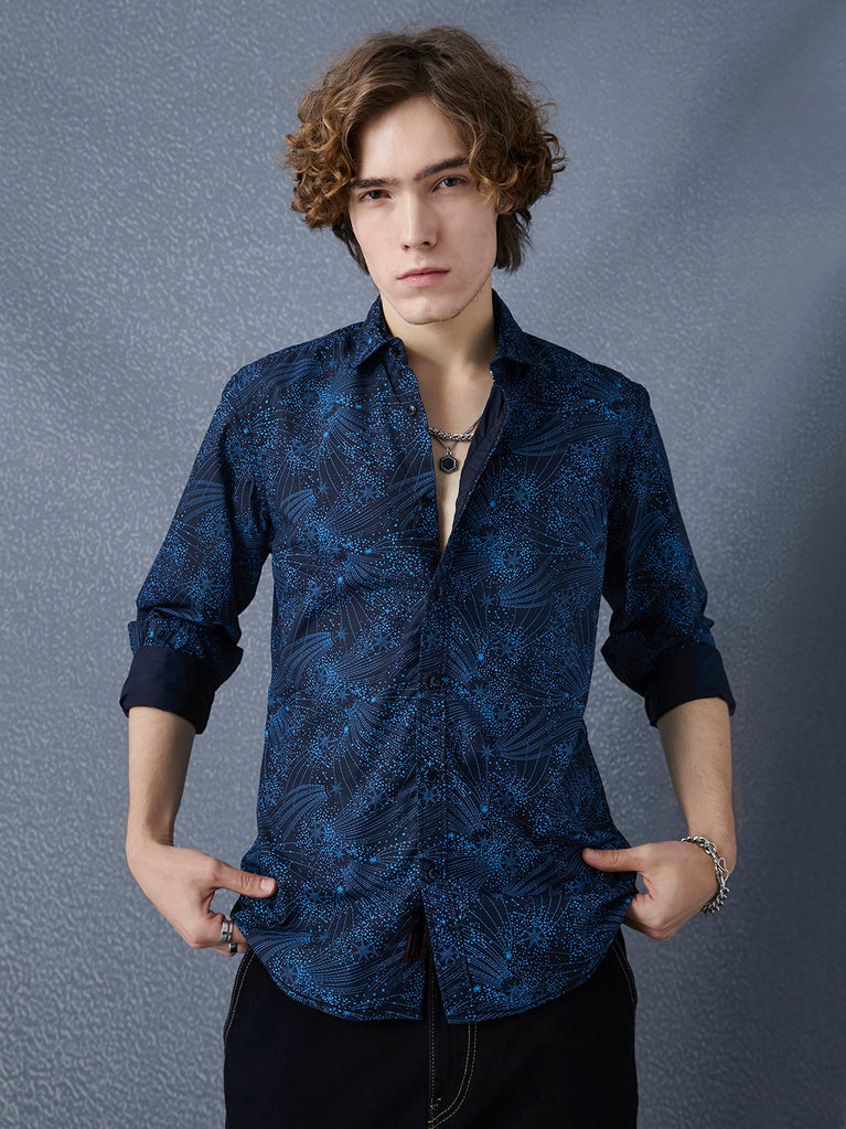 Men Relax Fit Premium Cotton With Blue Abstract Printed Casual Shirt