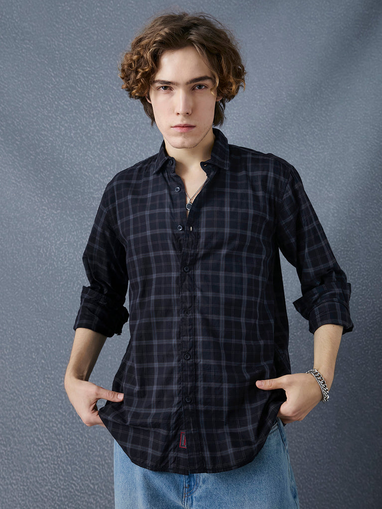 Men Regular Fit Premium Cotton Classic Black Grey Checked Casul Shirt