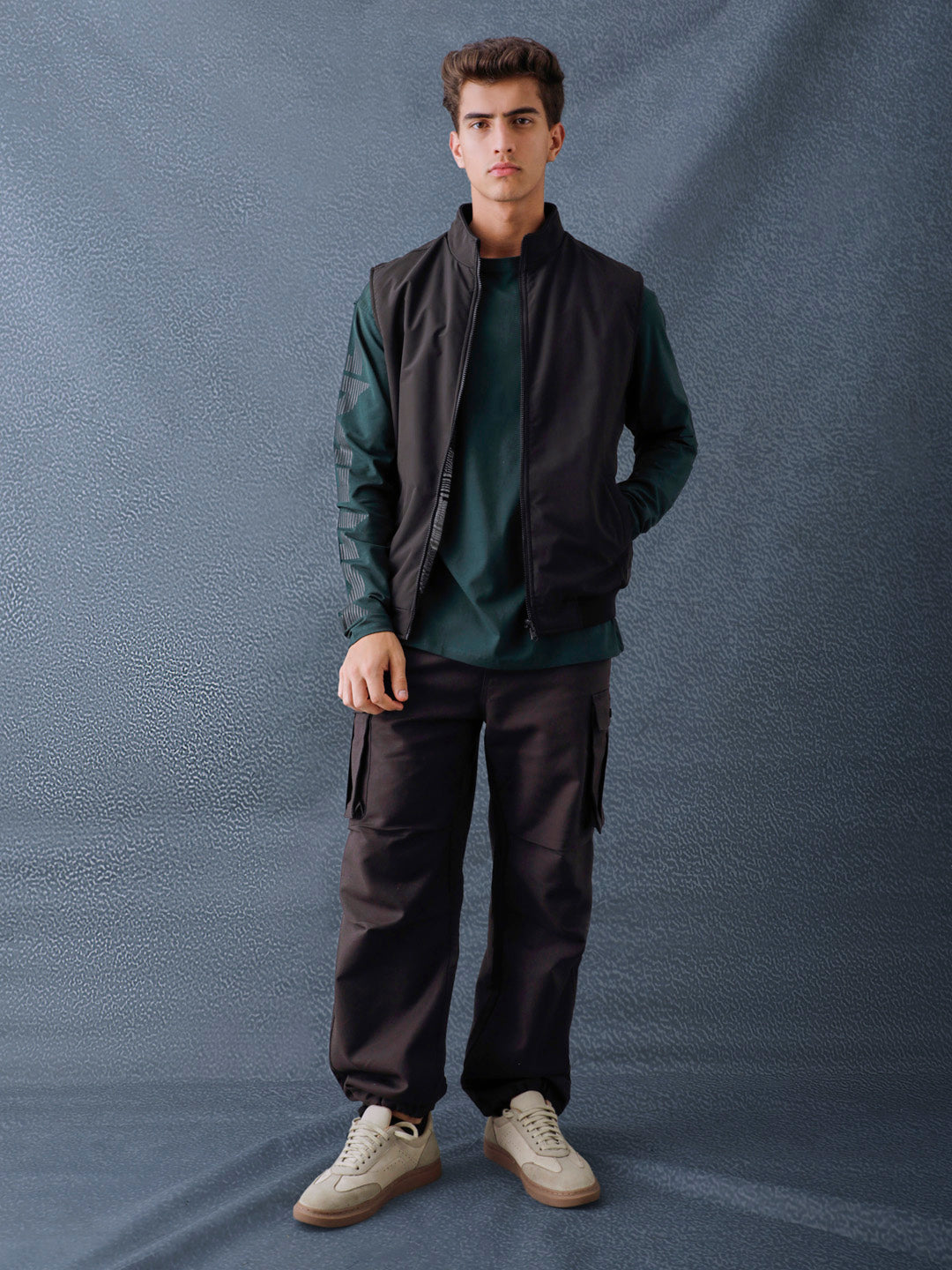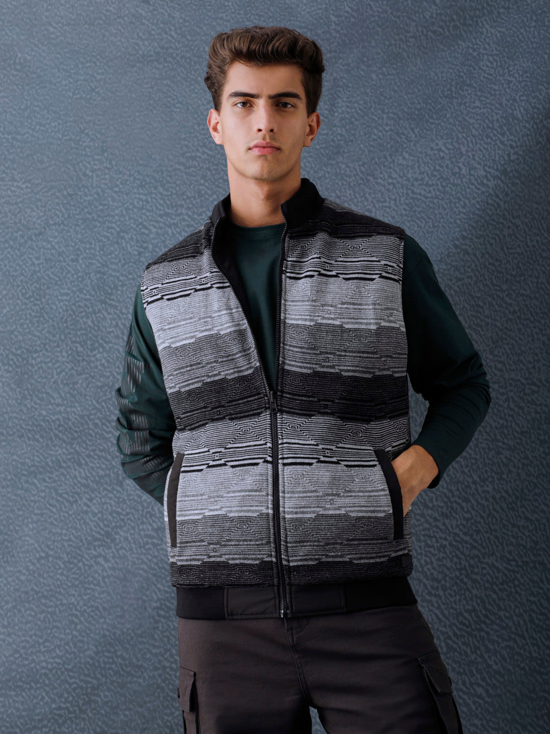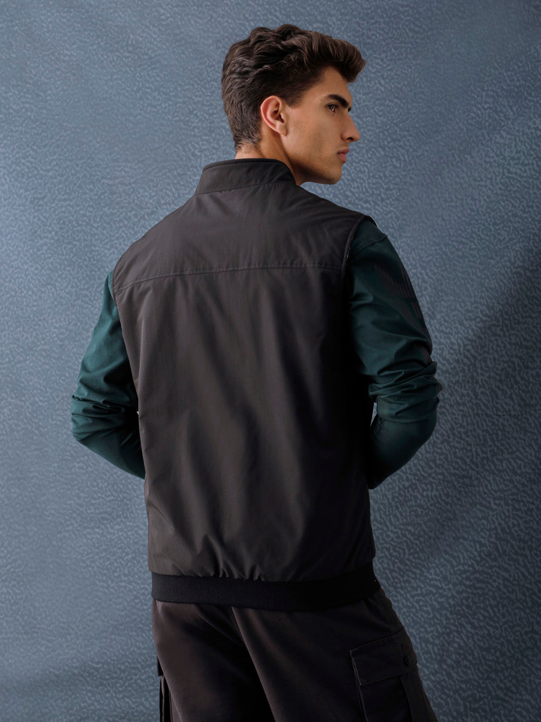 Men Regular Fit Black Grey Reversible Sleeveless Jacket