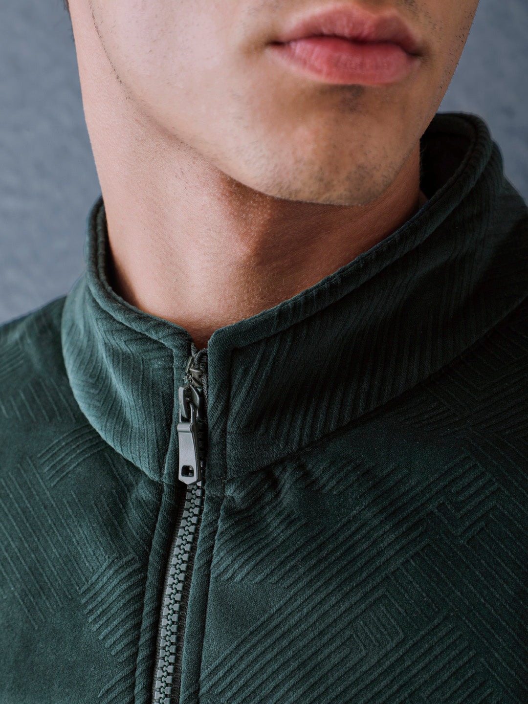 Voltedge Men Regular Fit Green High Neck Full Zip Sweatshirt