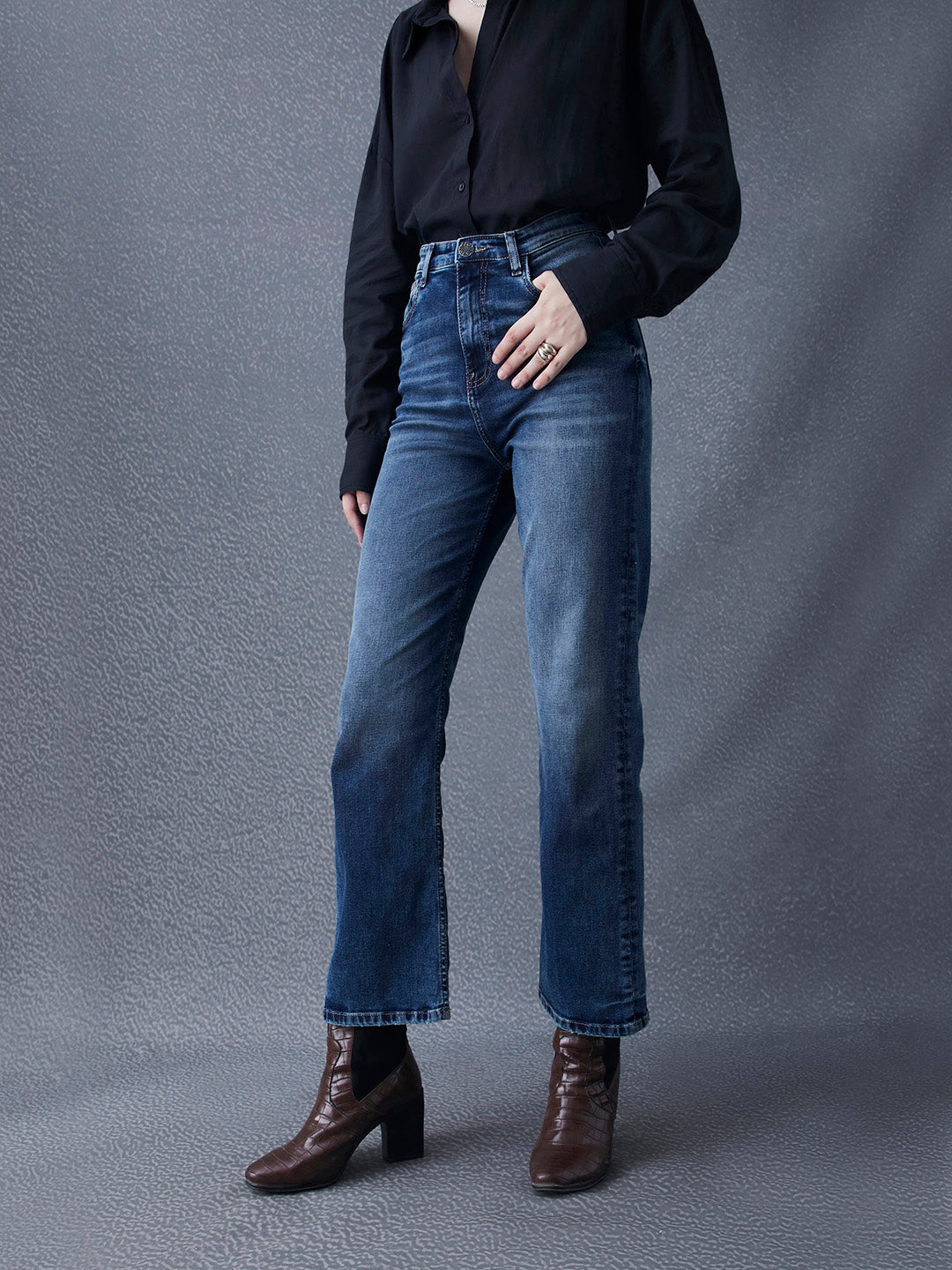 Women Premium Ultra High Waist Classic Straight Fit Cotton Stretch Indigo Jeans