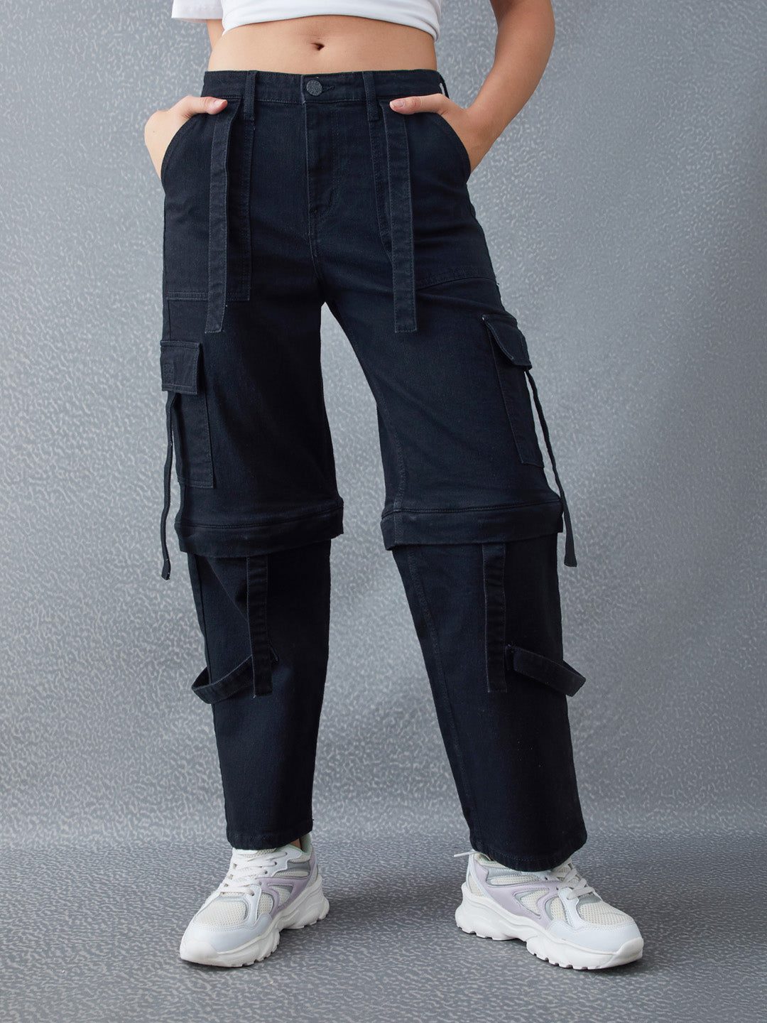 Voltedge Women Solid Cotton Loose Fit Detachable Jeans